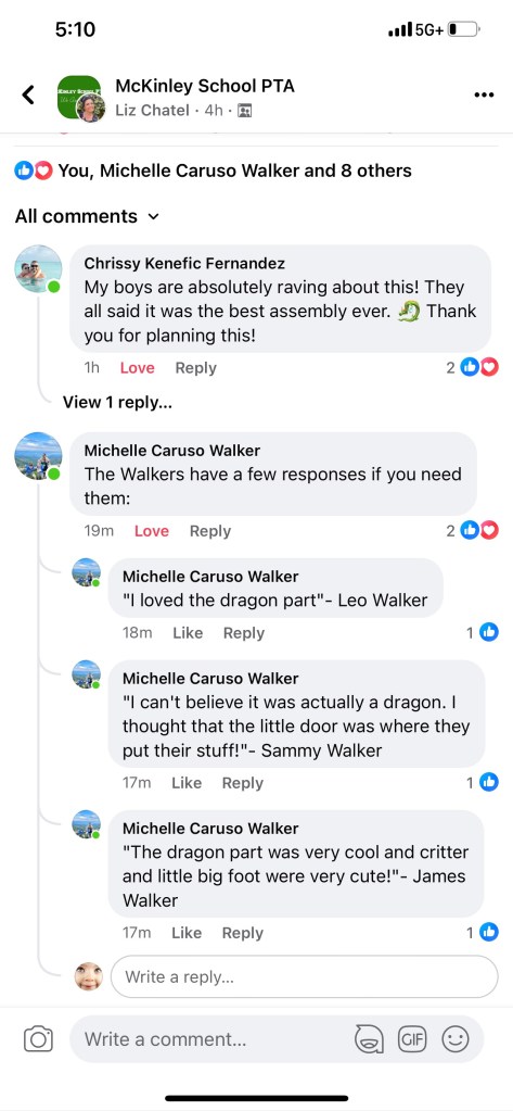 Our entire elementary school was mesmerized by “The Dragon and the Wanderer”! It was a wonderful combination of storytelling, music, theatre arts and puppetry. The students and staff were engaged throughout the entire performance and were so excited to talk to Leah and Aaron afterwards. It was especially impactful for our Multilanguage Learner population and our nonverbal/academically delayed students. We will have Wandering Theatre back any time!