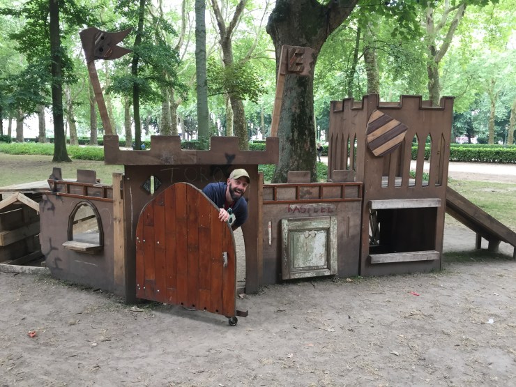 Our Brussels free walking tour guide, for instance, had something to say about the waffles. “Most of you may not want to hear this. But when you get a waffle–no toppings. They don’t need it!” He said it was like ruining a beautiful, tender, expensive steak by slathering it in ketchup. You can’t taste the deliciousness of the thing itself; all you taste is the toppings. The waffle “may as well be glorified cardboard. A little powdered sugar is okay, to bring out the crystallized sugar that’s baked into the waffle itself.” But that’s it. And of course, he was right. (Although I gotta admit, Aaron and I did also love the chocolate covered ones.)
