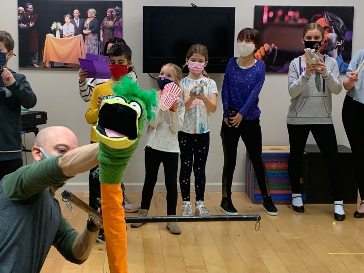 We also offer a variety of puppet workshops. In our shadow puppet building workshops, participants will build their own shadow puppets out of paper plates and learn how to manipulate them on a shadow screen. In our physical theatre & puppeteering workshops, participants will practice bringing everyday objects to life, creating cooperative puppets in groups, and using physicality and motion to tell stories. These workshops can be specifically tailored to any age range, and can last from 1/2 hr to 2 hrs based on your time frame and the workshop content. We can provide the materials; all you need is your creative spirit!