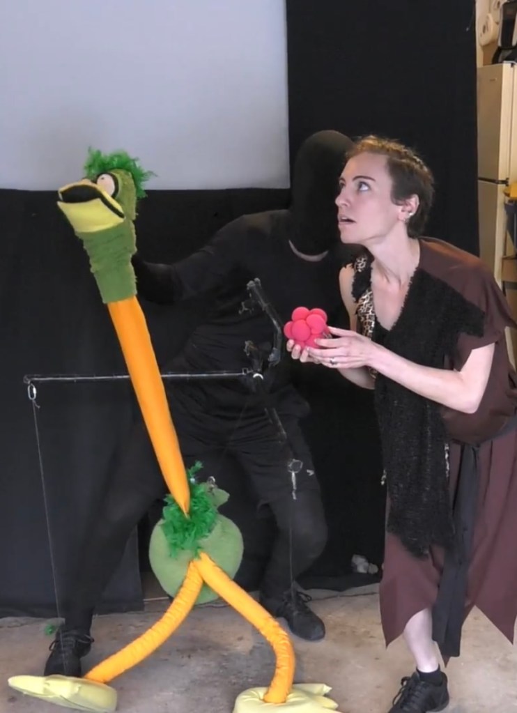 The Dragon and the Wanderer is a family-friendly show that uses puppets, shadow, movement and music to tell a story of self-discovery and friendship. In a time before language, Grog the Neanderthal wanders the desert, lonely and hungry. Even Grog’s newly budding power of telekinesis is not enough to guarantee survival, until Grog discovers an oasis where vegetation is lush, food is plentiful, and all types of unique creatures make their homes. But this almost-paradise is plagued by a menacing dragon who takes pleasure in tormenting anyone smaller. Using courage, an unlikely friendship, and a bit of magic, Grog and their new friend Little Bigfoot must outsmart the bully by facing the dragon in battle.